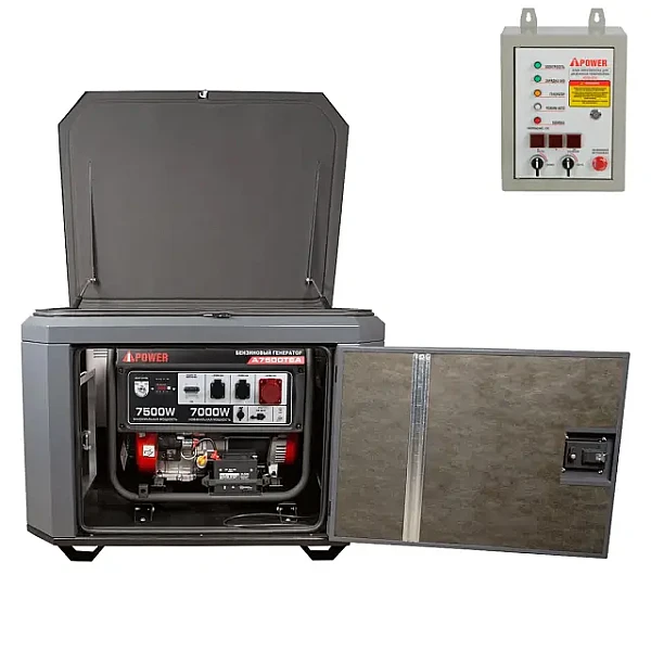 Бензиновый генератор A-iPower A7500TEA в тихом зимнем кожухе 1200 RAL 7024 + блок автозапуска A-iPower 400 В, 25 А