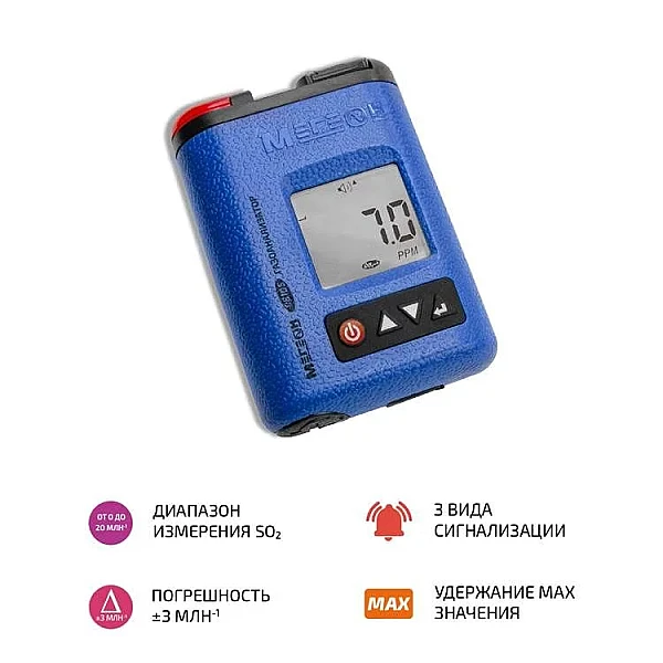 Газоанализатор МЕГЕОН 08105 – ручное измерительное устройство, которое применяется для изучения количественного и качественного состава диоксида серы в воздухе. Принцип работы инструмента основывается на съеме характеристик электрического тока, вырабатываемого электрохимической матрицей в результате химического взаимодействия с участием молекул исследуемого газа. Детектор отличается большой чувствительностью и высокой точностью исследования.