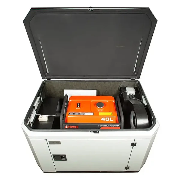 Бензиновый генератор A-iPower A8000EAX в супертихом зимнем кожухе 1400SS - надежный источник питания мощностью 7.5 кВт. Главные преимущества модели - до 10 часов работы на одном баке топлива и возможность подключения высоко индуктивных приборов с пусковой мощностью до 15 кВA.