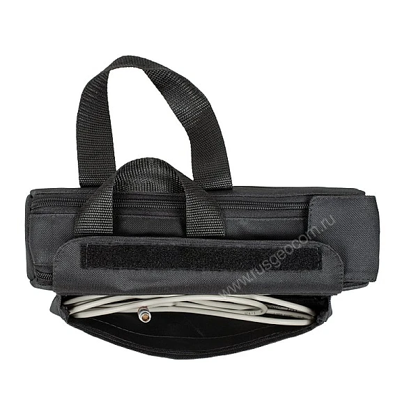 Устройство поставляется в комплекте с сумкой из непромокаемого материала. Благодаря этому, вы можете поставить комплект питания на мокрую траву, закрепить на штатив или использовать при повышенной влажности воздуха. Также, предусмотрены боковые карманы, в которые поместятся необходимые кабели, переходники и другие аксессуары.
