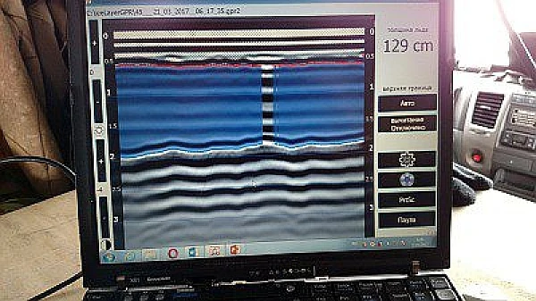 • в реальном времени оператор получает визуальную информацию о толщине льда, нормативной нагрузке, трещинах и неоднородностях внутри массива.