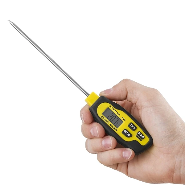 Проникающий термометр BT20 для применения в сфере общественного питания, лабораториях, торговле и промышленности, а также на профессиональных кухнях и кухнях для любителей. Длинный, тонкий измерительный наконечник из нержавеющей стали и широкий диапазон измерения от -40° C до +250°C делают этот практичный проникающий термометр идеальным для различных измерительных приложений в гастрономии, торговле, промышленности, а также в лабораториях и для приготовления пищи в домашних условиях. Пластиковый корпус BT20 легко чистится и снабжен резиновым, мягким на ощупь, защитным кожухом для удобного захвата. От приготовления мяса на барбекю до подготовки материалов для строительства - BT20 позволяет быстро и легко измерять температуру воды, масел и других жидкостей, газов, порошков, сыпучих материалов или пластмасс. Поскольку BT20 гигиеничен в использовании, он отлично подходит для инспекций в пищевой промышленности и для инспекторов пищевых продуктов, которые ценят простые и эффективные средства для определения внутренней температуры различных продуктов в соответствии с требованиями HACCP.