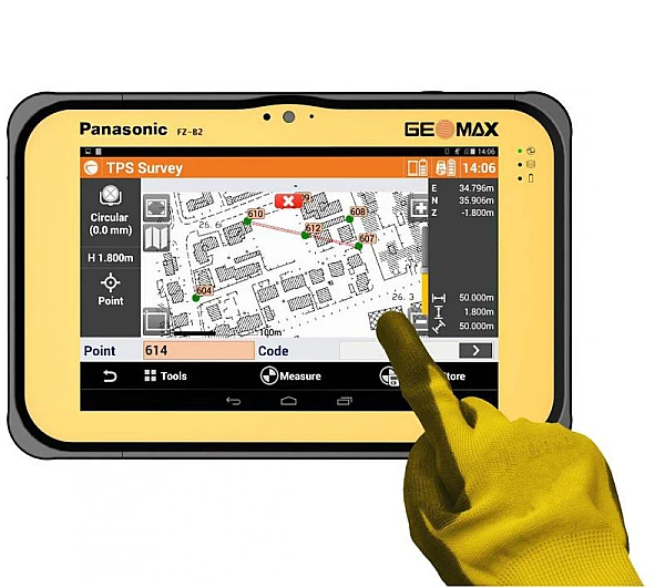 Дисплей контроллера Geomax FZ-B2 с разрешением 1280х800 пикс создан по технологии IPS, которая дает широкий угол обзора без изменения цветопередачи. Авто настройка яркости поможет во время работы при ярком солнечном освещении.