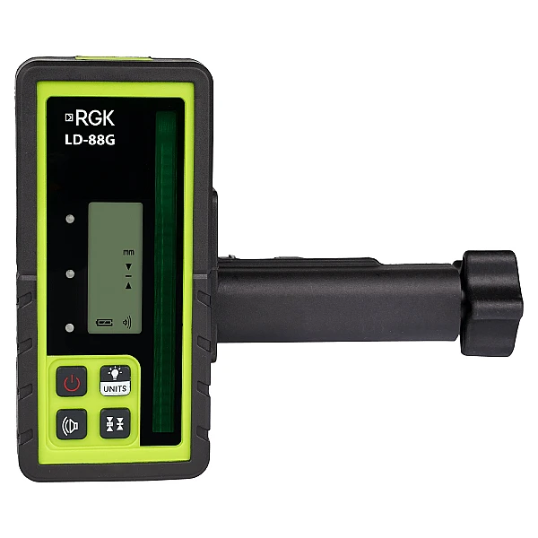 Приемник излучения RGK LD-88G необходим для работы с ротационными нивелирами RGK и других брендов, оборудованными зелеными лазерными излучателями. Прибор позволяет проводить измерения на расстоянии до 300 м от нивелира и делает возможной работу на улице или при ярком искусственном свете, когда луч нельзя увидеть. Это модель хорошо подойдет в качестве замены для менее функциональных аналогов, которыми по умолчанию комплектуются ротационные нивелиры других компаний.