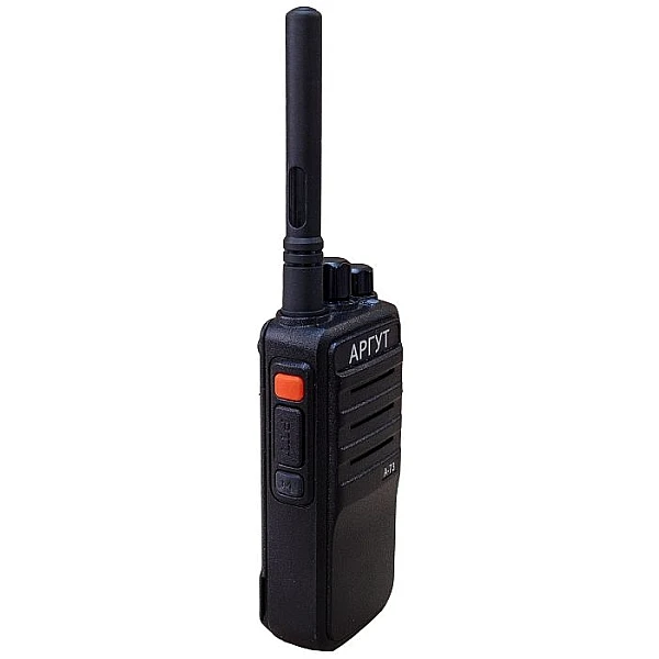 Цифровая радиостанция полупрофессионального класса. Работает в цифровом или в аналоговом режиме. Режим автоматического сканирования удобен при использовании Аргут А-73 в радиосети, где радиоретрансляторы работают на различных частотах. Цифровой канал защищён от помех, прослушивания и вмешательства в переговоры сторонних абонентов. В комплекте дополнительно малогабаритная антенна для скрытого ношения радиостанции.