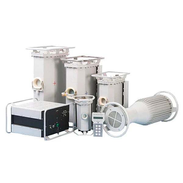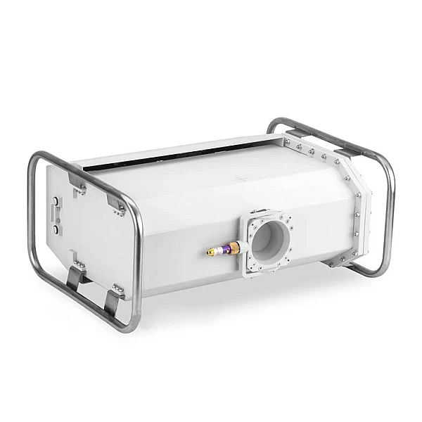 Вентиляторный блок представляет собой съемный кожух с тремя вентиляторами, который формирует воздушный поток, обтекающий блок излучателя. Аппарат может работать без вентиляторного блока, но при этом значительно возрастают перерывы между рабочими циклами.