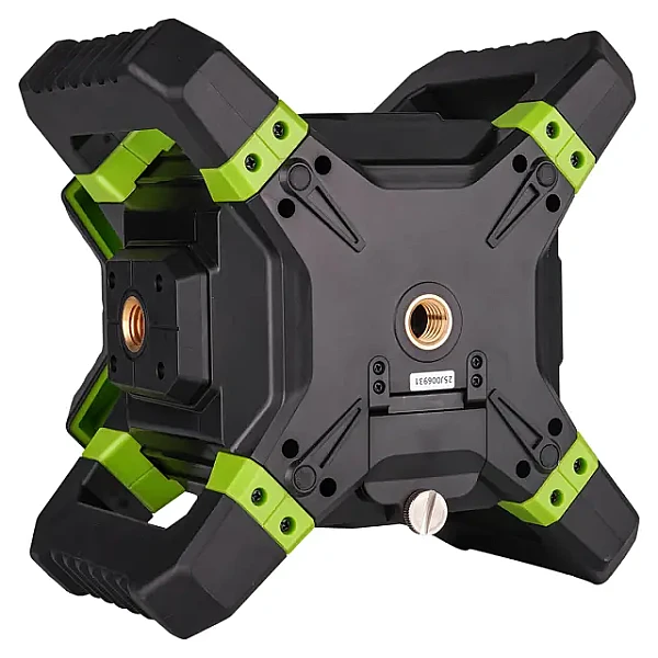 Для недопущения повреждения лазерной головки в процессе эксплуатации ротационный нивелир RGK SP-312G снабжен верхней крышкой, усиленной ребрами жесткости. 4 крупноразмерные ручки, позволяющие удобно переносить и устанавливать прибор, выполняют роль дополнительной защиты от механических воздействий. Благодаря параллельной конструкции они могут применяться как опора при использовании изделия для проецирования вертикальной плоскости, с установкой на грунт или любую поверхность. Также предусмотрена возможность крепления изделия на штативе, для чего на корпусе имеются два перпендикулярных винтовых крепления.