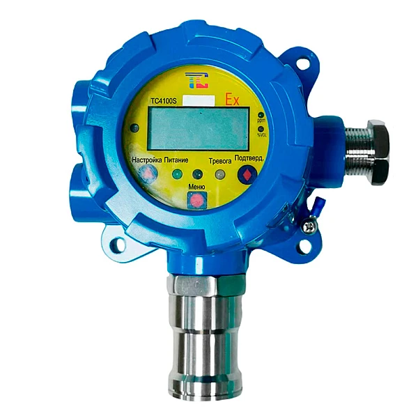 Качественный стационарный газоанализатор токсичных газов и кислорода, оснащённый электрохимическим сенсором, с протоколами HART и RS-485, 3 реле, а также с дисплеем и световыми индикаторами.