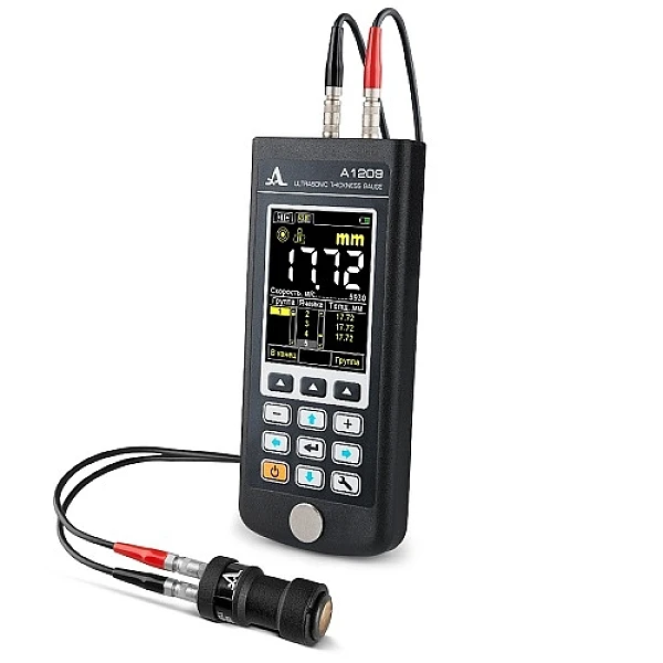 Ультразвуковой толщиномер А1209 предназначен для измерения толщины стенок труб, котлов, сосудов, обшивок судов, литья, листового проката и других изделий из чёрных и цветных металлов с гладкими или грубыми и корродированными поверхностями. Поддерживает работу со всей линейкой раздельно-совмещенных преобразователей в диапазоне от 4 до 10,0 МГц. Имеет встроенную память на 50 000 измерений.