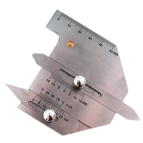 Cостоит из четырех компонентов: основной шкалы, измерителя высоты, измерителя глубины подреза и универсального измерителя. Применяется для измерения смещения, угла кромки, высоты, ширины зазора и глубины подреза сварного шва, и др. и подходит для контроля котлов, мостов, кораблей, сосудов давления и труб нефтяного сортамента.