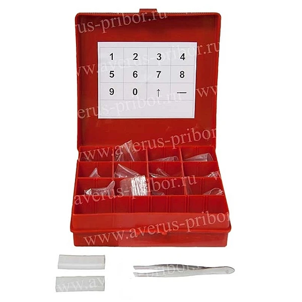 - Пеналы − 5 шт. Каждый пенал имеет 6 ячеек, в которые можно поместить в определенной последовательности до 6 знаков. Пенал с набранным цифровым обозначением контролируемого изделия или отдельного участка устанавливается в карман кассеты или непосредственно на изделие.